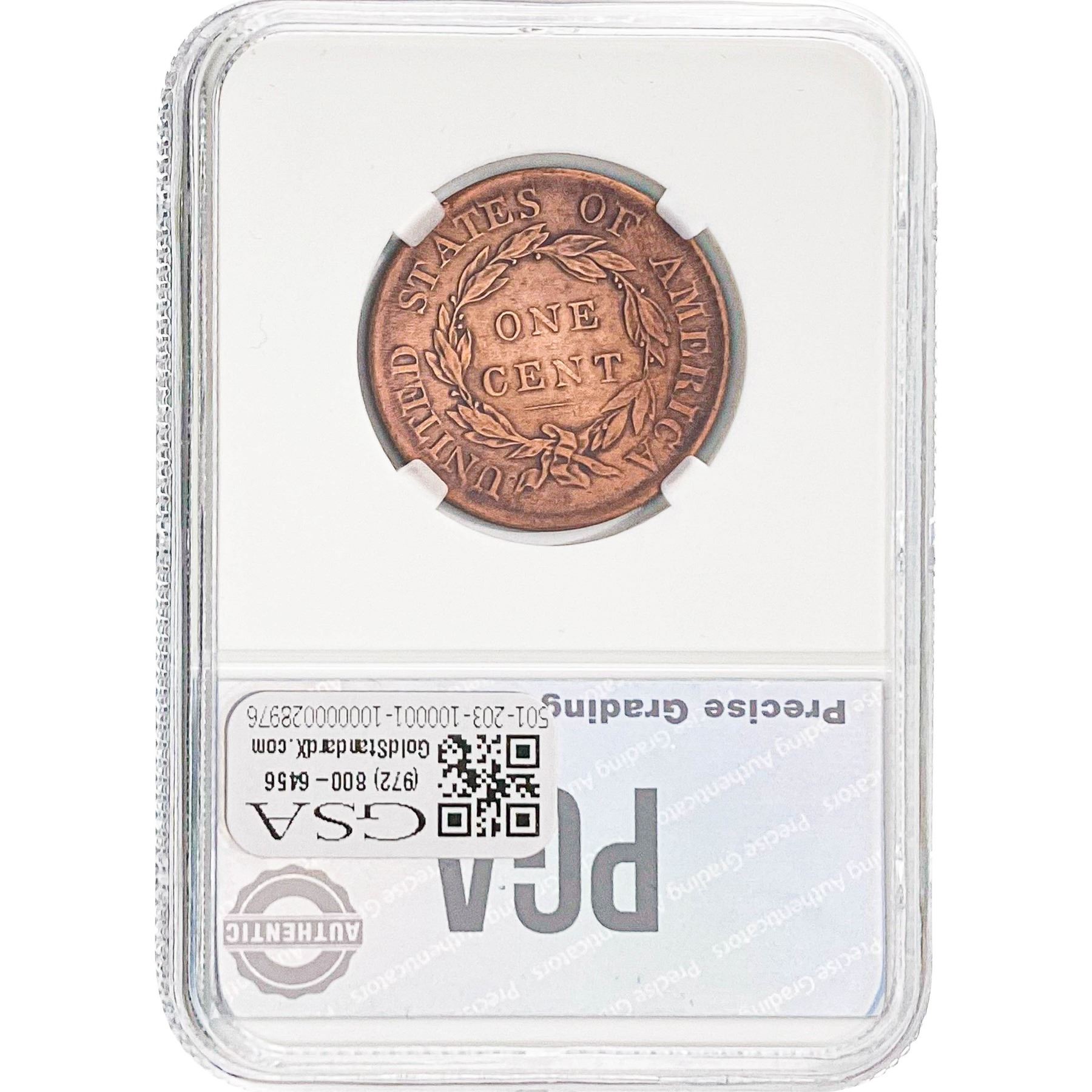l. All non-certified coins and currency are guaranteed genuine, but are not guaranteed as to grade, since grading is a matter of opinion, an art and not a science, and therefore the description rendered by GSA or any third-party grading service may not agree with the opinion of others (including trained experts), and the same expert may not grade the same item with the same grade at two different times. GSA may, but is not obligated to, express an opinion as to non-certified numismatic items, in GSA’s opinion, or by its employees’ experience and the current interpretation of the American Numismatic Association’s standards as of the date the catalog was prepared. There is no guarantee or warranty expressed or implied that the grading opinions utilized by GSA, if any, will meet the standards of any grading service at any time in the future.