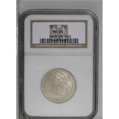 1818 25C MS65 NGC. B-4, R.2. This needle-sharp Gem off