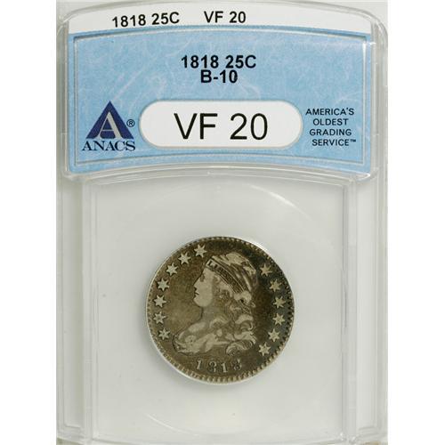 1818 25C VF20 ANACS. B-10. NGC Census: (41/328). PCGS
