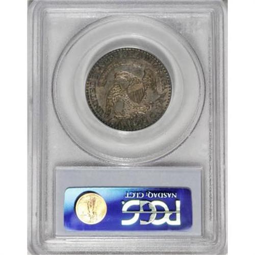 <B>1818/5 25C AU55 PCGS.</B></I> B-1, R.2. A briefly circulated, attractively toned example of this <I>Guide Book </B></I>overdate, lightly marked overall with a touch of wear on the highpoints. Both sides display faint die cracks and lovely peach and blue-gray patina. The reverse is rotated approximately 20 degrees counterclockwise. Population: 2 in 55, 39 finer (8/07).<BR><BR><B>Coin Engraver:</B> John Reich<BR><BR><b>Shipping:</b> Coins & Currency (<a target="_blank" href="http://www.heritageauctions.com/common/shipping.php">view shipping information</a>)