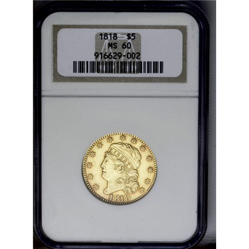 1818 $5 MS60 NGC. Breen-6471, B. 1-A, Miller-123, R.5.