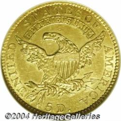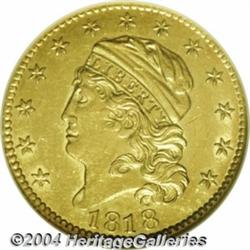 <table><tr><td><table><tr><td>1818 $5 STATESOF AU58 NGC. Breen-6470, B. 2-B, Miller-124, R.4. Three die pairings are known of 1818 Half Eagles, and each merits a separate Guide Book listing. Breen 2-B is noted for the TAT in STATES spaced more widely than TESOF. The Capped Head Left type is among the rarest of the denomination, and only the initial 1813 issue of the series can be obtained without some difficulty. This bright example is sharply struck aside from the left border of the shield, and the fields have only a couple of moderate abrasions. Ample luster outlines the stars, legends, and devices. An opportunity for the alert early gold specialist. <BR><BR><B>Important notice:</B> Heritage usually auctions material at the rate of 200-250 lots per hour. On some occasions eBay Live bid software or the Internet may not be able to keep up with the pace of the auction. We recommend placing a realistic absentee bid now as insurance to avoid disappointment. Occasionally the auctioneer may eliminate or reject an eBay Live bid, and the auctioneer may also reopen a lot after the close of the eBay live bidding (usually because we missed an audience bid), and may reject your bid even if it shows you as the winning bidder. By bidding via eBay Live, you agree that Heritage may award the lot to another bidder at its sole discretion under the circumstances described above or any other reasonable circumstances. Since eBay bids are not shown to us until we open the lot on the floor, we treat those bids just like floor bids. In most cases the floor responds before the eBay bid is presented to us, due to Internet lag time, so for consistency we have made it a policy that floor bids are always considered first over tie eBay live bids. Also please note that all Heritage lots purchased through eBay Live carry a 20% Buyer's Premium. Please make sure you read the Terms and Conditions before you bid. <BR><BR><B>IMPORTANT ANNOUNCEMENT ABOUT RESERVES:</B> Heritage now divulges all reserves on its web site 7 days before every auction. If you want to know whether the reserve on this lot has been met, and if not, what the reserve amount is, please visit this lot page on the HeritageCoin.com web site, or email: bid@HeritageGalleries.com </span></font></td></tr></table></td></tr></table>