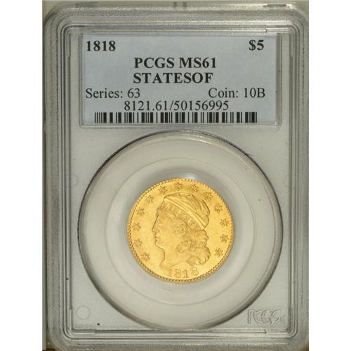 1818 $5 STATESOF MS61 PCGS. Breen-6470, B. 2-B, Miller