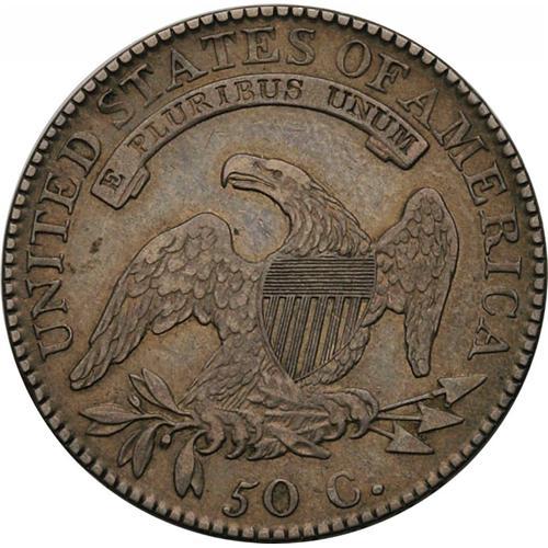 <B>1818<50C>--Improperly Cleaned--NCS. AU Details.</B></I> O-107. R.1. Intermingled navy blue and rosy-gold iridescence on medium gray surfaces. Both the obverse and reverse exhibit complete milling, and the reverse, in particular, shows excellent centering. Envelope Included.