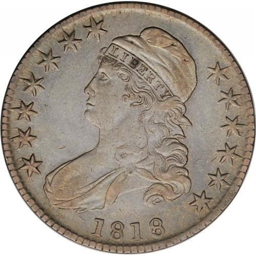 <B>1818<50C>--Improperly Cleaned--NCS. AU Details.</B></I> O-107. R.1. Pale gold toning on the highpoints changes to sky blue in the fields. Some old hairlines on the obverse account for the NCS label designation. <BR><I>Ex: George Ramont (3/1971).</B></I> Envelope Included.