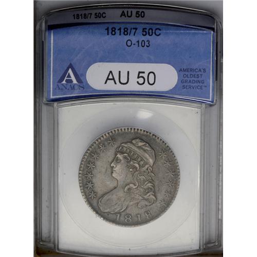 1818/7 50C Large 8 AU50 ANACS. O-103, R.3. There is a 1818/7[50C] Large 8 AU50 ANACS.