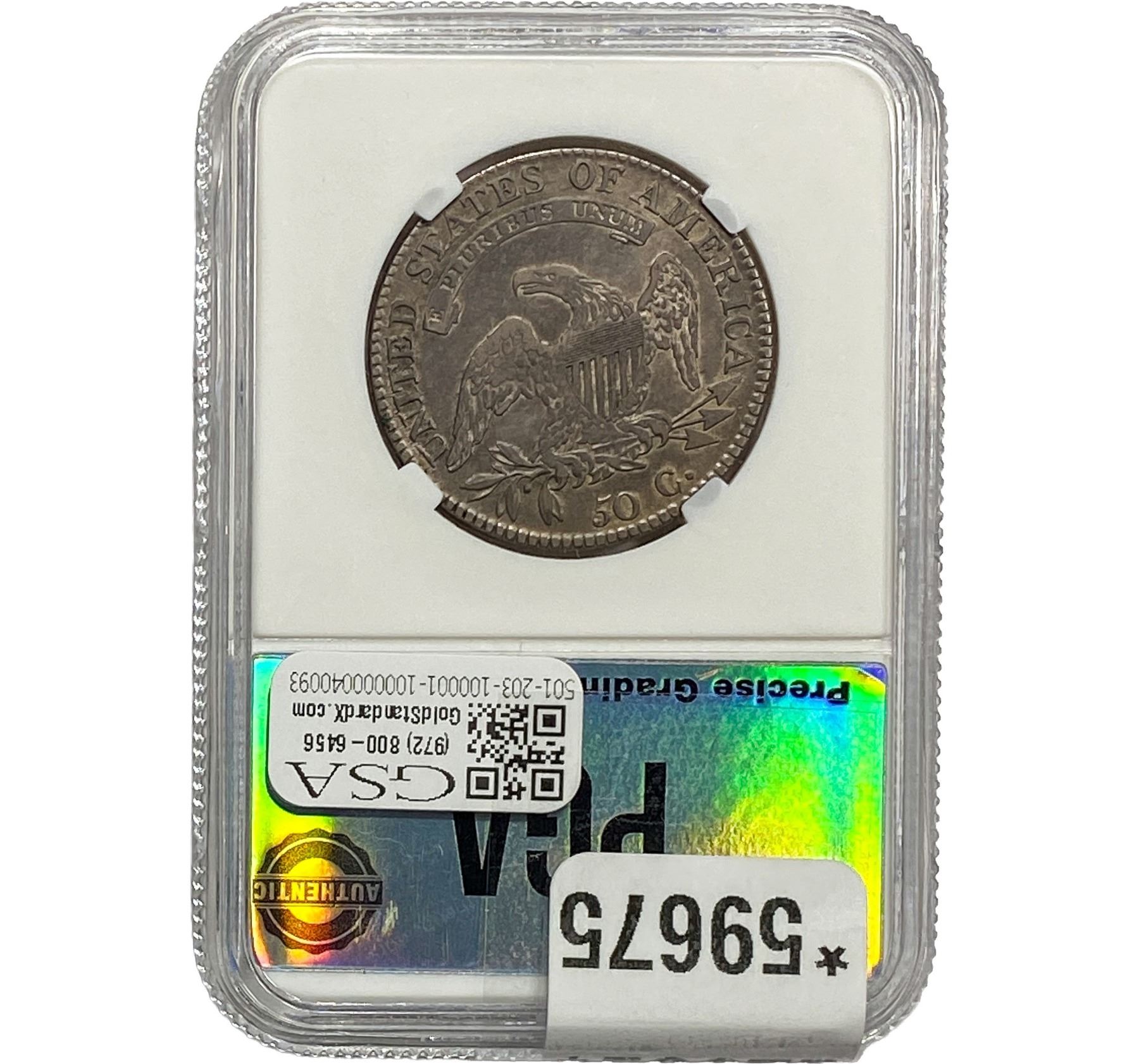 l. All non-certified coins and currency are guaranteed genuine, but are not guaranteed as to grade, since grading is a matter of opinion, an art and not a science, and therefore the description rendered by GSA or any third-party grading service may not agree with the opinion of others (including trained experts), and the same expert may not grade the same item with the same grade at two different times. GSA may, but is not obligated to, express an opinion as to non-certified numismatic items, in GSA’s opinion, or by its employees’ experience and the current interpretation of the American Numismatic Association’s standards as of the date the catalog was prepared. There is no guarantee or warranty expressed or implied that the grading opinions utilized by GSA, if any, will meet the standards of any grading service at any time in the future.