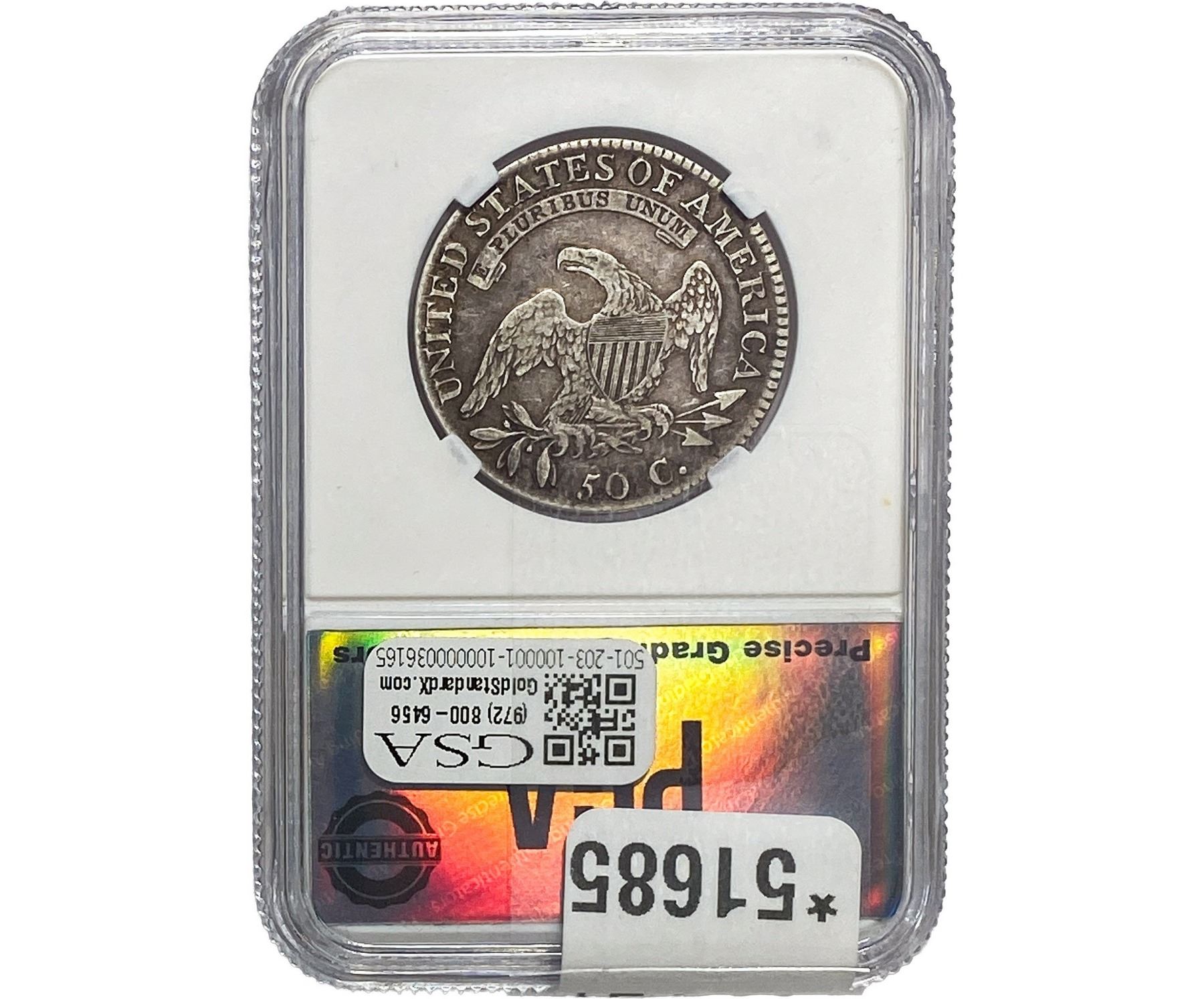 l. All non-certified coins and currency are guaranteed genuine, but are not guaranteed as to grade, since grading is a matter of opinion, an art and not a science, and therefore the description rendered by GSA or any third-party grading service may not agree with the opinion of others (including trained experts), and the same expert may not grade the same item with the same grade at two different times. GSA may, but is not obligated to, express an opinion as to non-certified numismatic items, in GSA’s opinion, or by its employees’ experience and the current interpretation of the American Numismatic Association’s standards as of the date the catalog was prepared. There is no guarantee or warranty expressed or implied that the grading opinions utilized by GSA, if any, will meet the standards of any grading service at any time in the future.