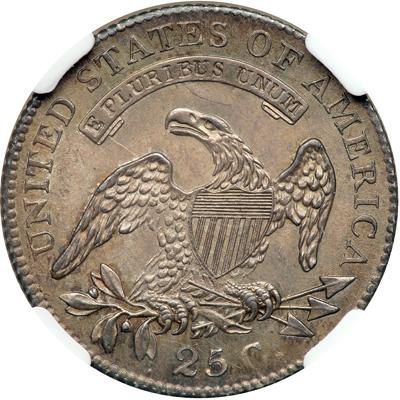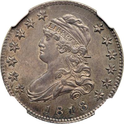 1818 Capped Bust Quarter Dollar. NGC graded MS-64. Nice even grey toning. Well struck. In a new 4 pronged NGC holder.Pop 51; 33 finer; 22 in 65; 10 in 66; 1 in 67.