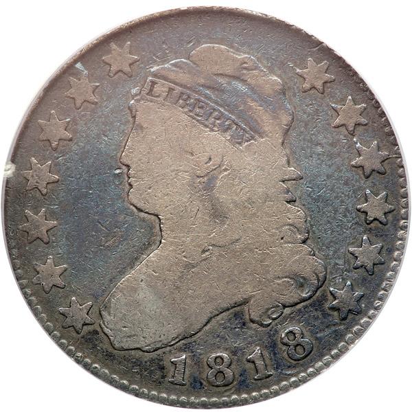 1818. PCGS Genuine. Our grade is VG-8. Nice even toning and probably cleaned decades ago (PCGS # 5322) .