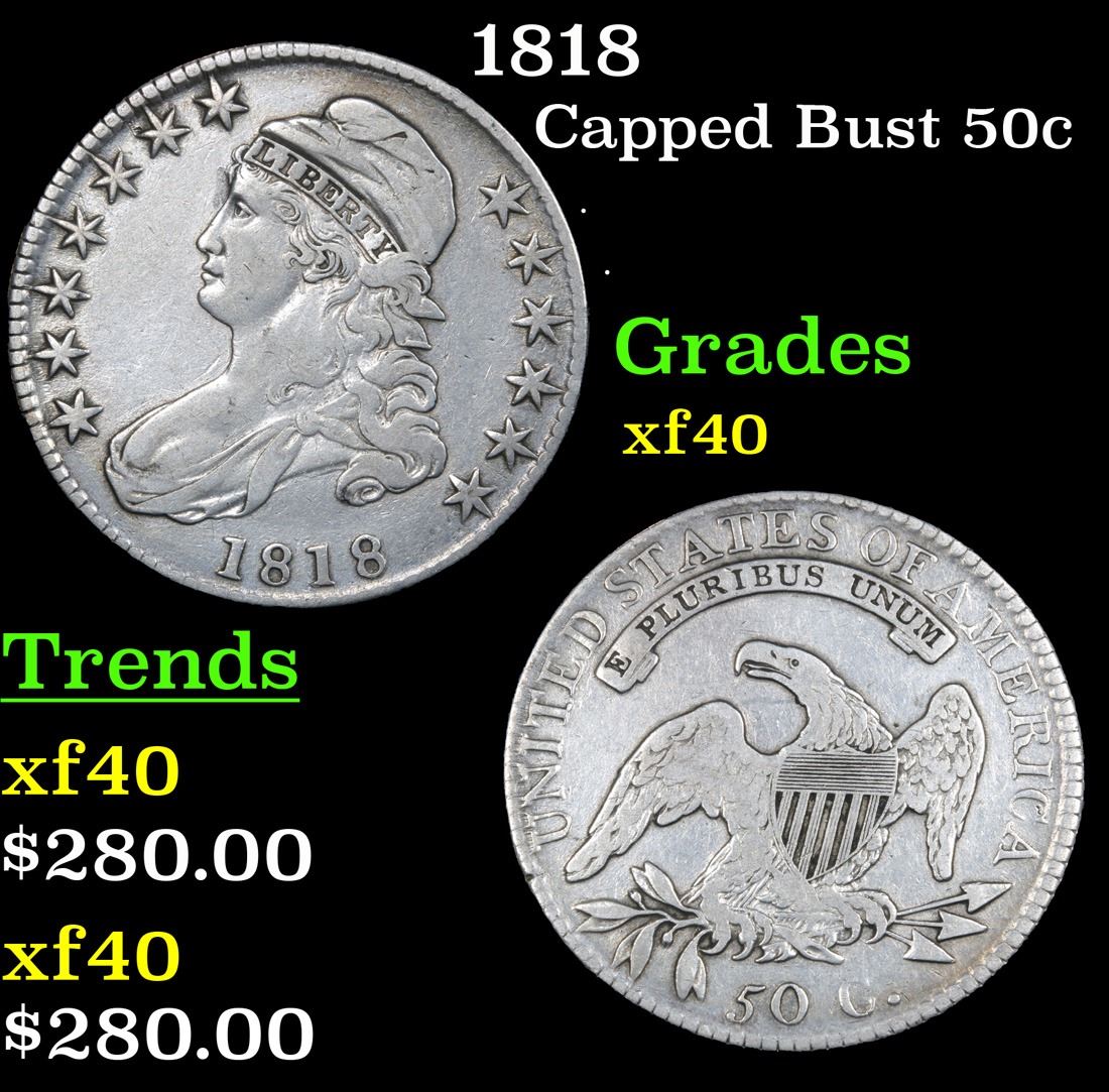 1818 . . Capped Bust Half Dollar 50c Grades xf. A Corey's Pick, Bid to Win, Don't let it get Away Coin