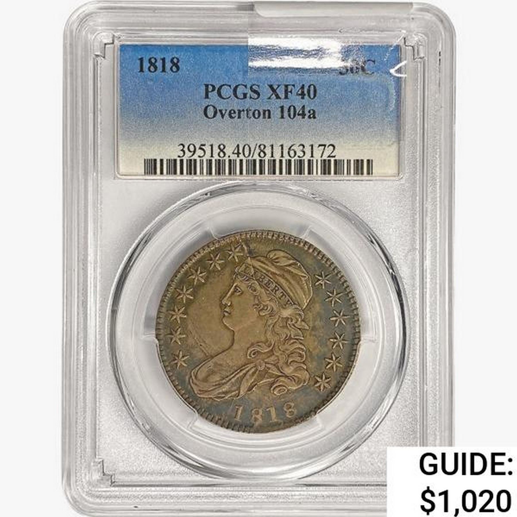 1818 Capped Bust Half Dollar PCGS XF40 Overton104a