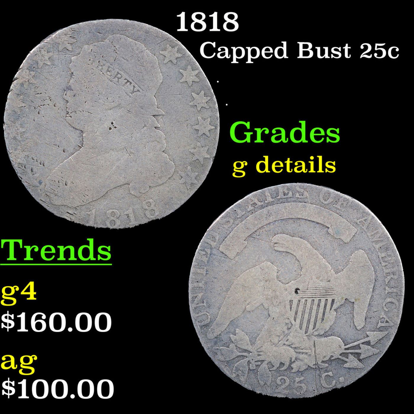 1818 Capped Bust Quarter 25c Grades g details.