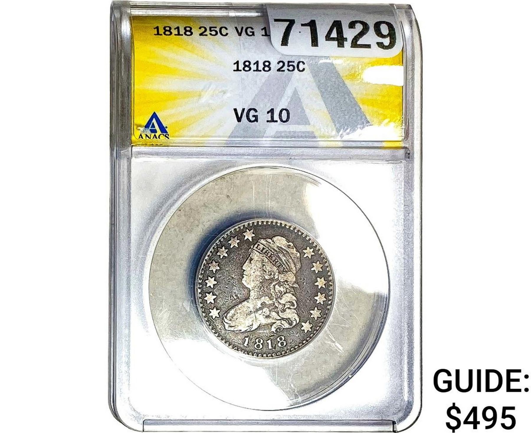 1818 Capped Bust Quarter ANACS VG10
