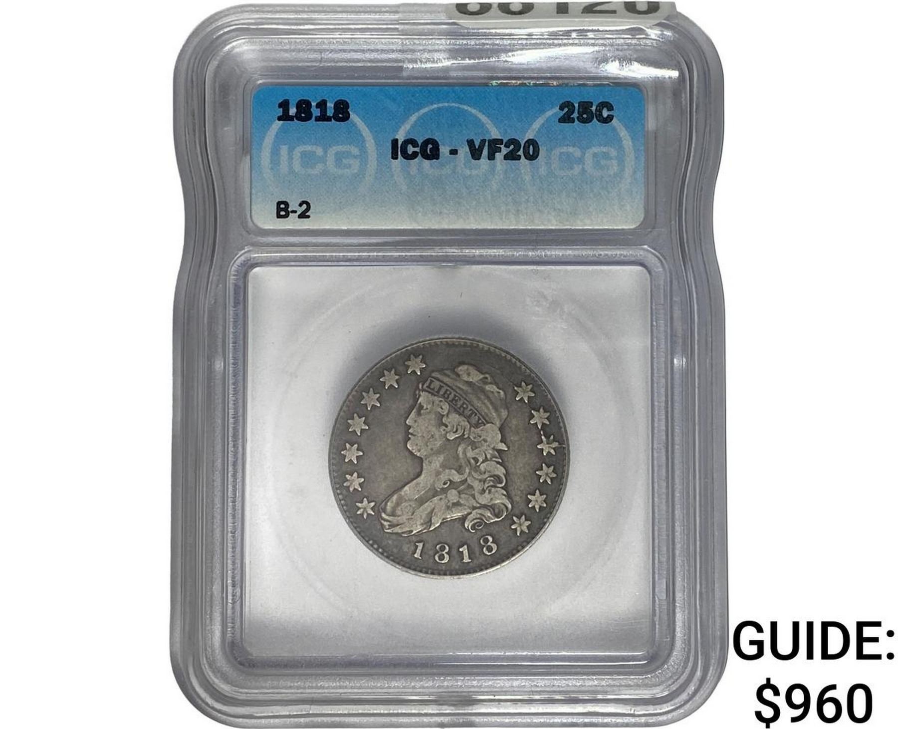 1818 Capped Bust Quarter ICG VF20