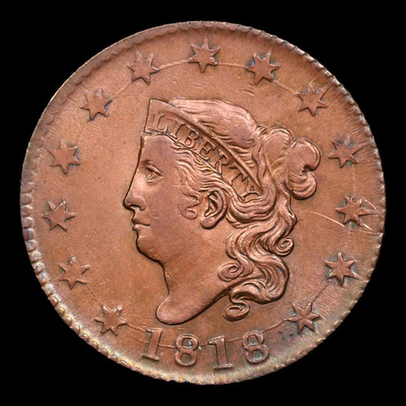 1818 Coronet Head Large Cent 1c Grades Choice AU/BU Slider.