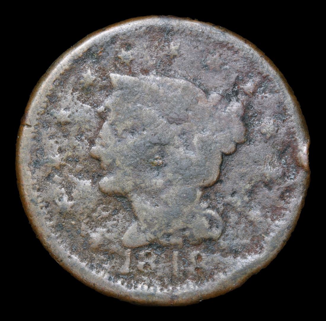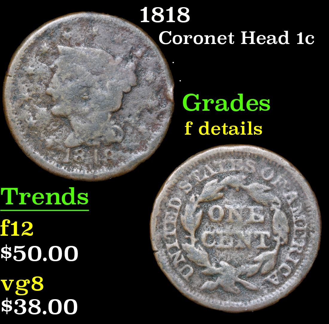 1818 . . Coronet Head Large Cent 1c Grades f details.