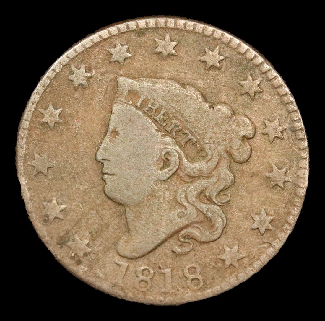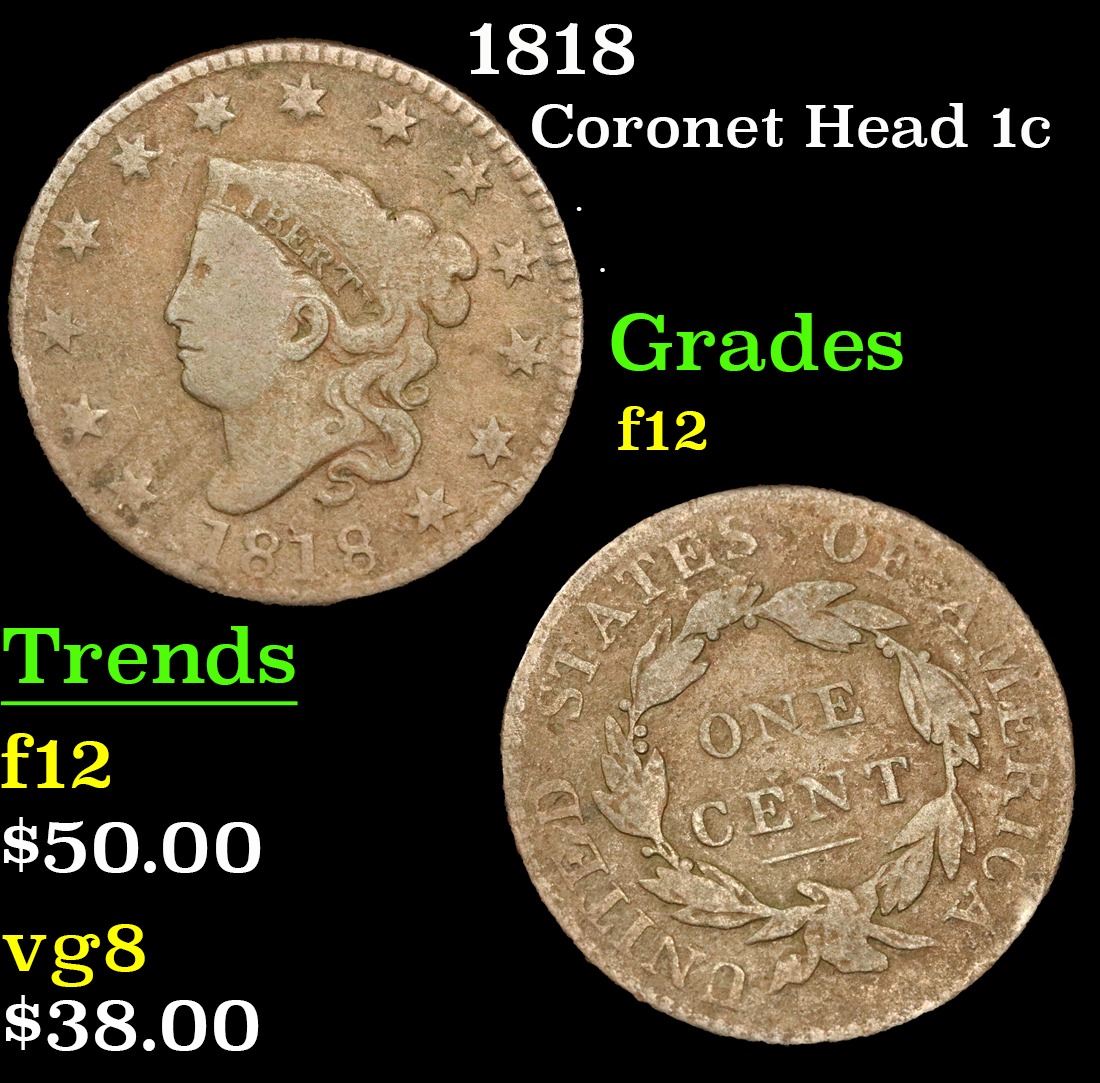 1818 . . Coronet Head Large Cent 1c Grades f, fine.