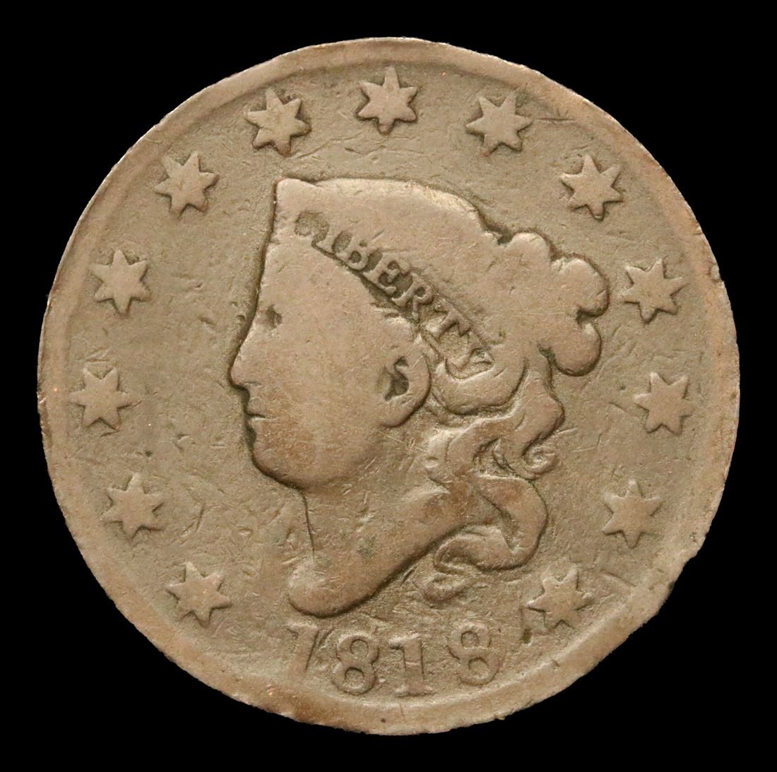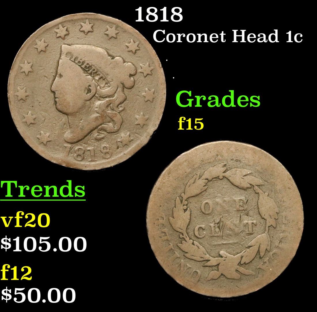 1818 . . Coronet Head Large Cent 1c Grades f+.