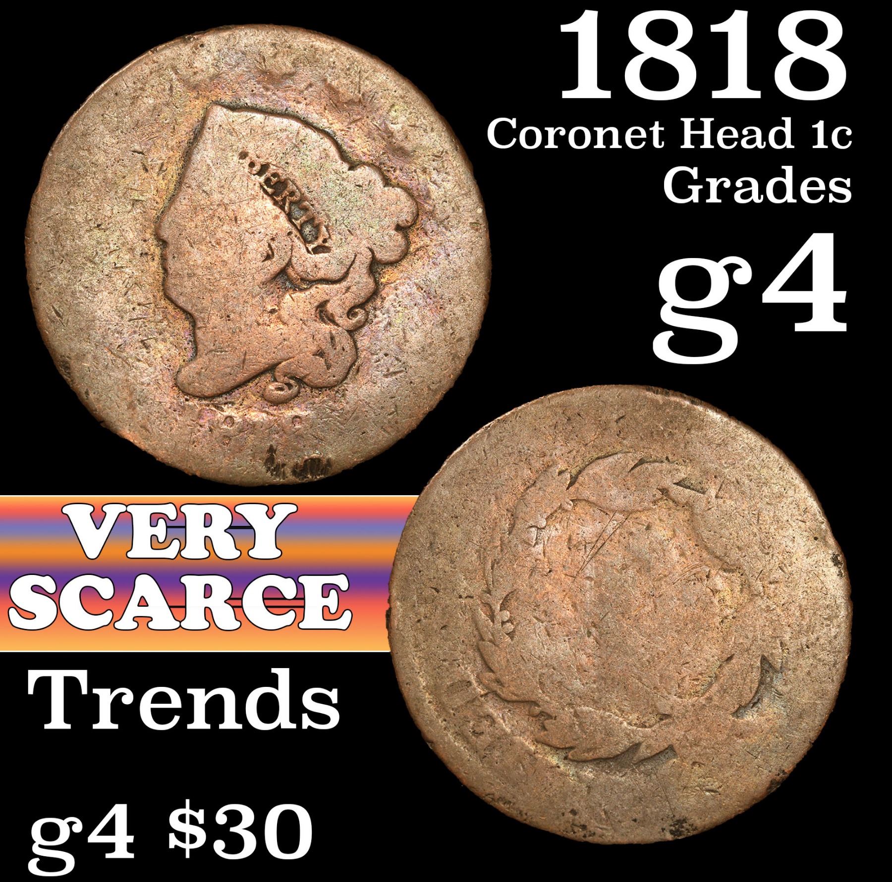 1818 Coronet Head Large Cent 1c Grades g, good.