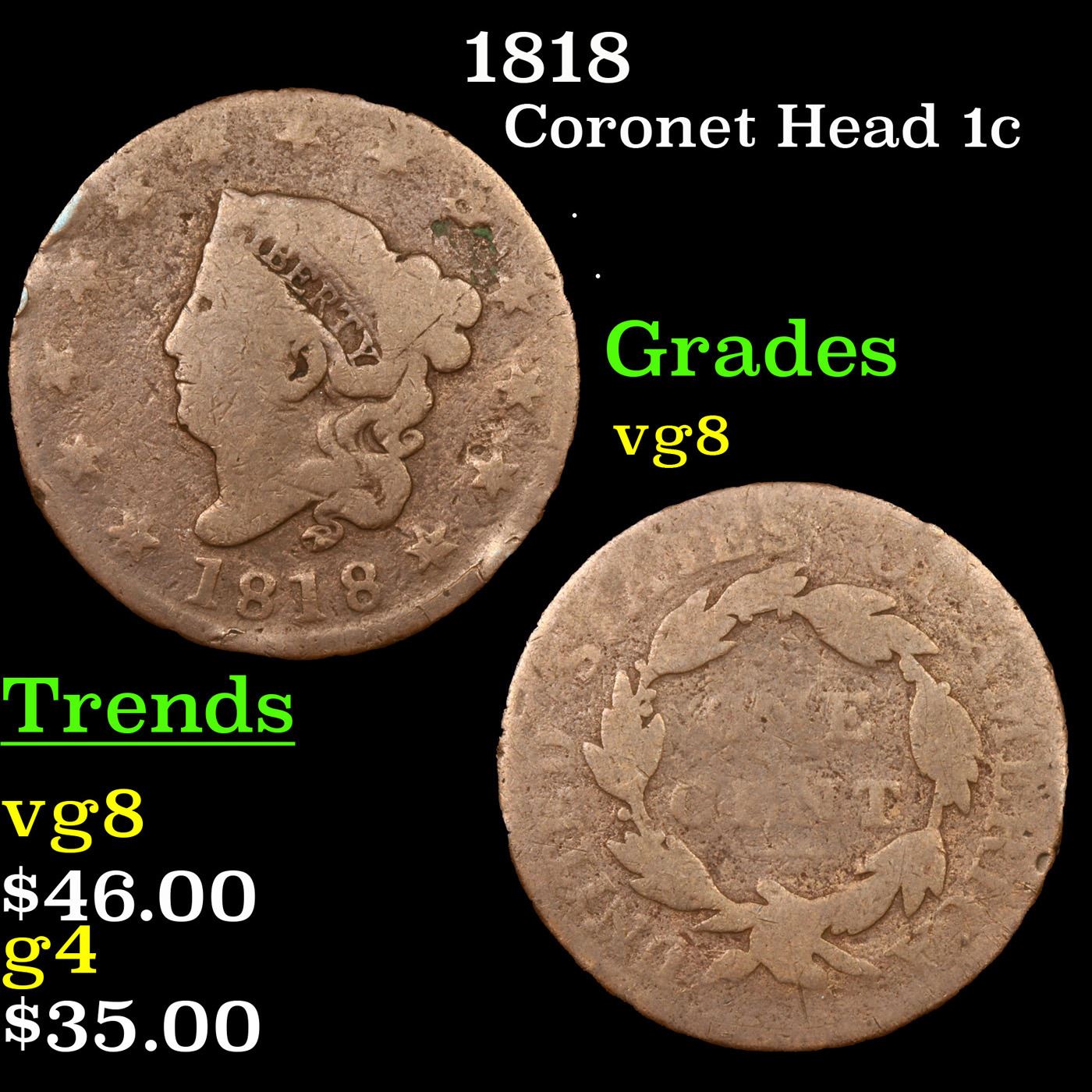 1818 Coronet Head Large Cent 1c Grades vg, very good.