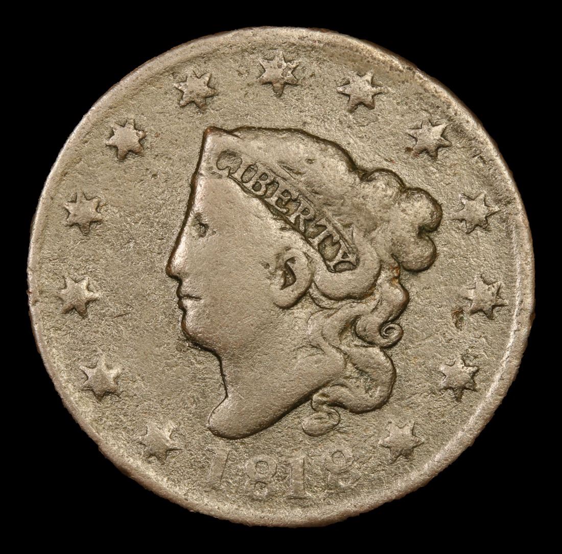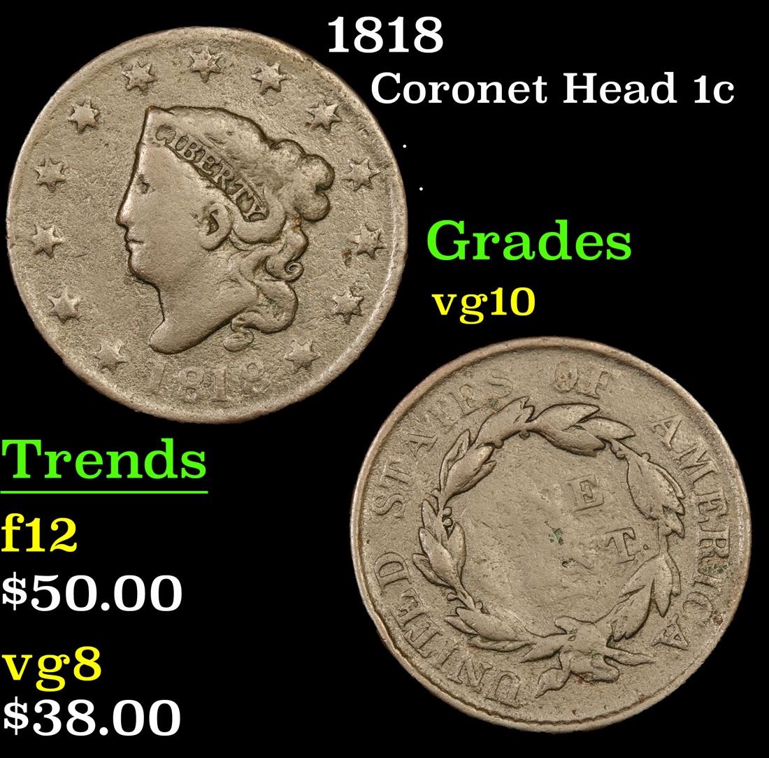1818 . . Coronet Head Large Cent 1c Grades vg+.