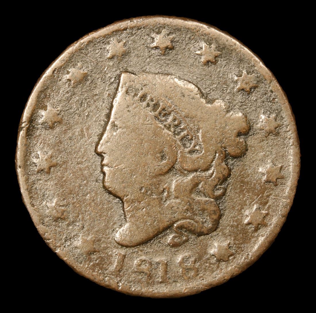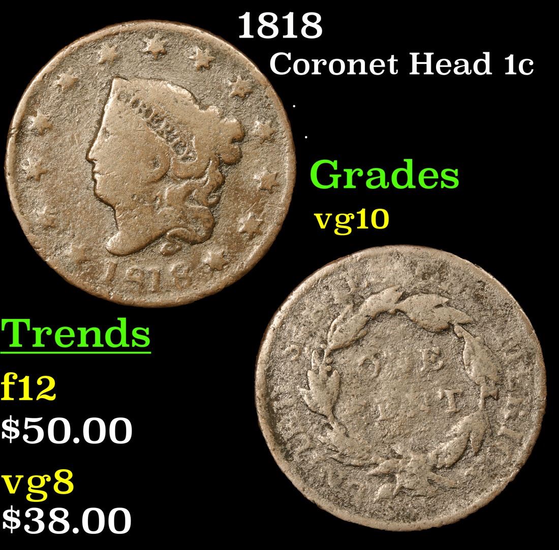 1818 . . Coronet Head Large Cent 1c Grades vg+.