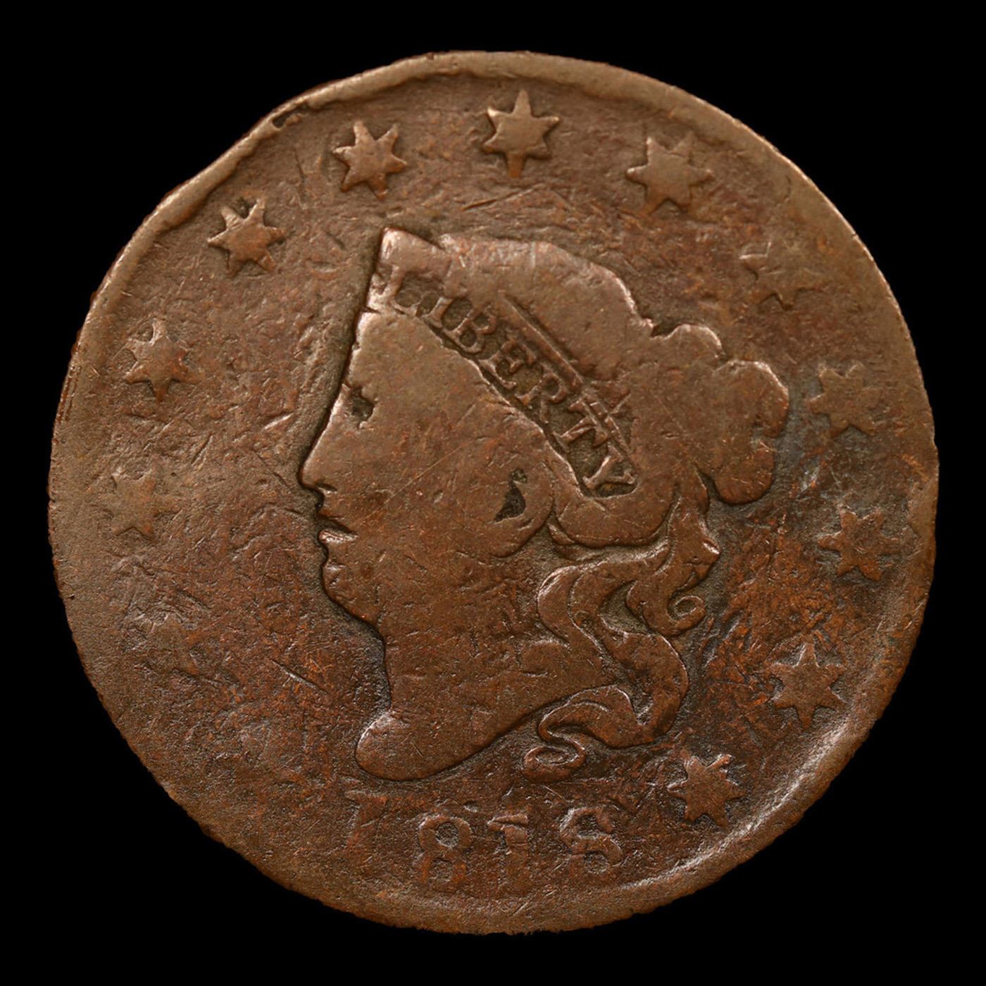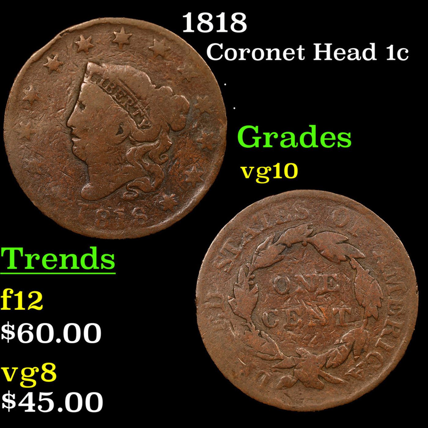 1818 Coronet Head Large Cent 1c Grades vg+.
