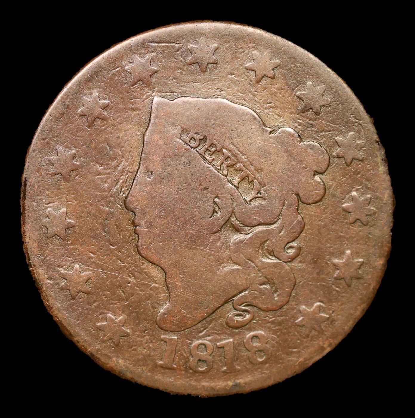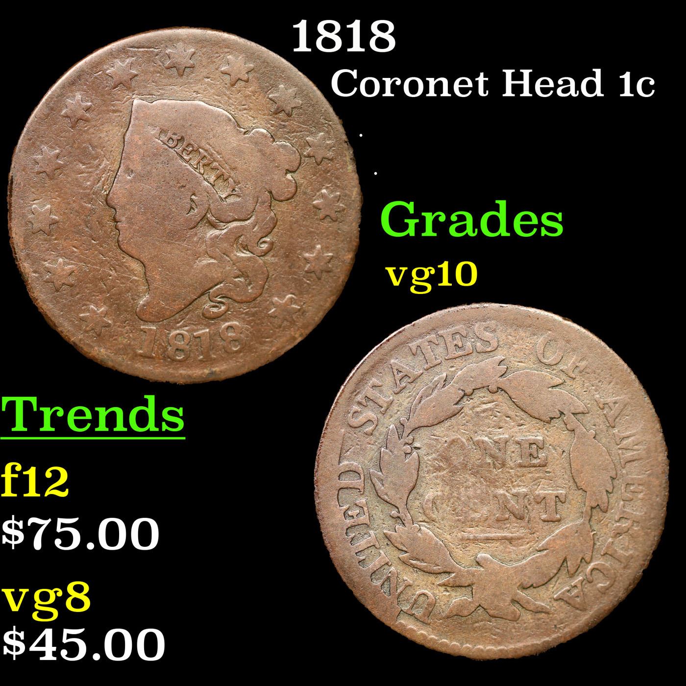 1818 Coronet Head Large Cent 1c Grades vg+.