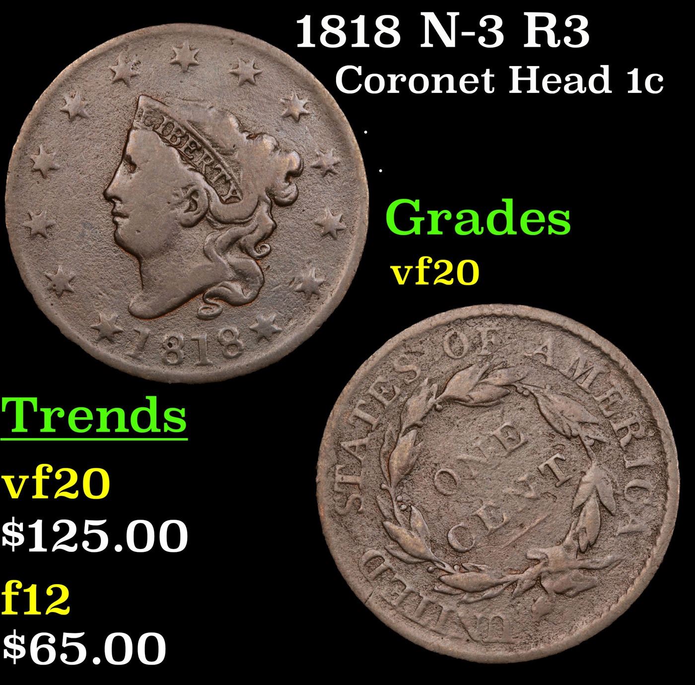 1818 N-3 R3 Coronet Head Large Cent 1c Grades vf, very fine