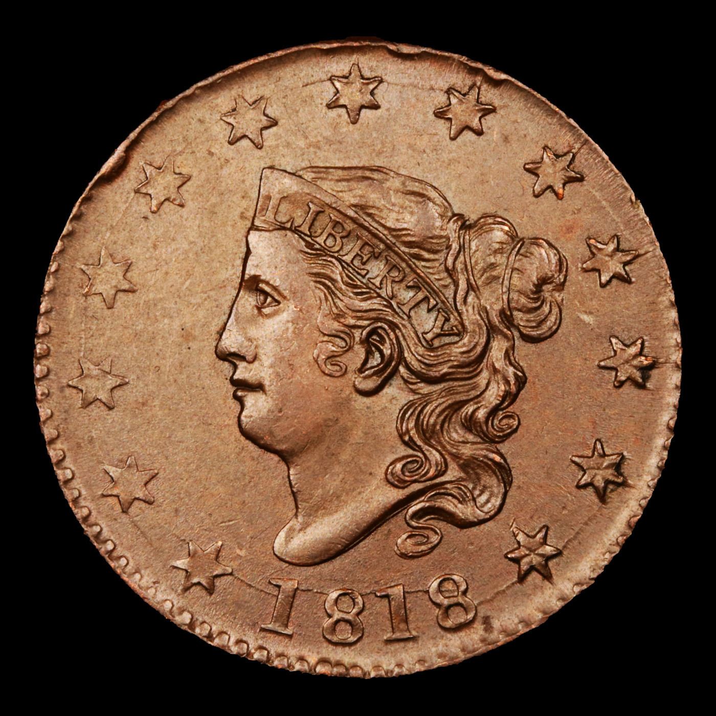 1818 N8 R3 Coronet Head Large Cent 1c Grades Choice AU.