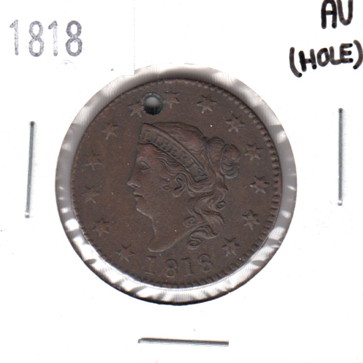1818 USA 1-cent AU (Hole)