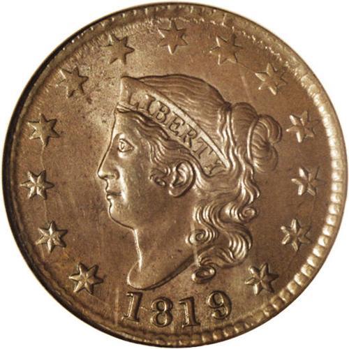 1819 1C Large Date MS66 Brown NGC. N-2, R.1. One of tw 1819[1C] Large Date MS66 Brown NGC.