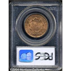 <B>1819<1C> Small Date MS63 Red PCGS.</B></I> N-8, R.1. A later die state which features lapped denticles, as made. The pumpkin-orange surfaces are only occasionally interrupted by hints of lilac color. Essentially undisturbed by contact, although a couple of carbon flecks are observed. Currently the only 1819 Small Date Cent certified as Red by PCGS.<BR><I>Ex: Stack's, 5/1971, lot 100.</B></I> <BR><BR><B>Important notice:</B> Heritage usually auctions material at the rate of 200-250 lots per hour. On some occasions eBay Live bid software or the Internet may not be able to keep up with the pace of the auction. We recommend placing a realistic absentee bid now as insurance to avoid disappointment. Occasionally the auctioneer may eliminate or reject an eBay Live bid, and the auctioneer may also reopen a lot after the close of the eBay live bidding (usually because we missed an audience bid), and may reject your bid even if it shows you as the winning bidder. By bidding via eBay Live, you agree that Heritage may award the lot to another bidder at its sole discretion under the circumstances described above or any other reasonable circumstances. Since eBay bids are not shown to us until we open the lot on the floor, we treat those bids just like floor bids. In most cases the floor responds before the eBay bid is presented to us, due to Internet lag time, so for consistency we have made it a policy that floor bids are always considered first over tie eBay live bids. Also please note that all Heritage lots purchased through eBay Live carry a 20% Buyer's Premium. Please make sure you read the Terms and Conditions before you bid.