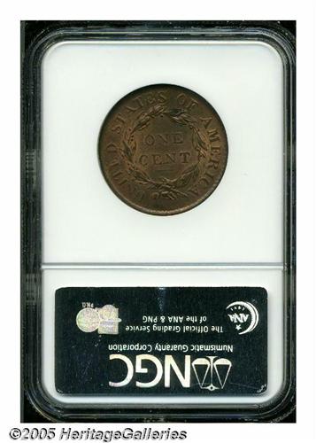 <B>1819<1C> Small Date MS64 Red and Brown NGC.</B></I> N-9, R.1. More Red than Brown, with a blush of lavender color only on the highpoints of the portrait. A lustrous and crisply struck near-Gem that has pleasing surfaces. A whisper of carbon on the leaf below the O in OF is of little relevance.