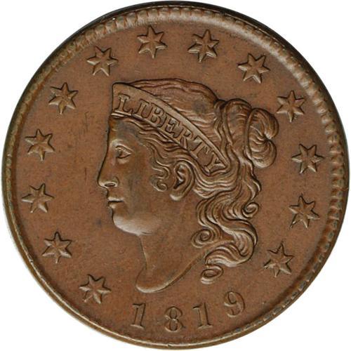 1819 1C Small Date. N-10, R.4. MS62 Brown NGC. XF45 EA 1819[1C] Small Date. N-10, R.4. MS62 Brown NG