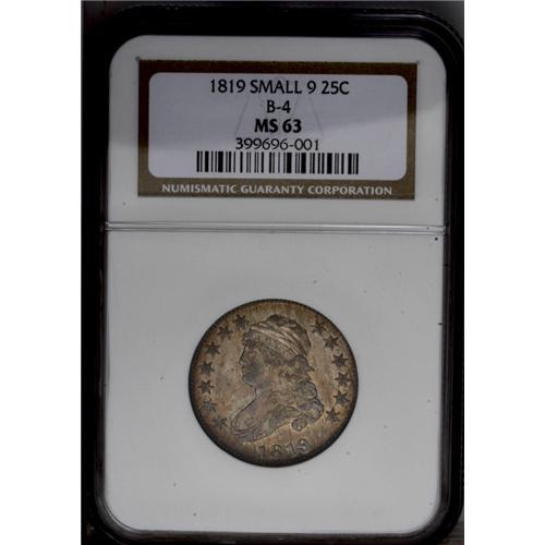 "1819 25C Small 9 MS63 NGC. B-3, R.1. Mi"