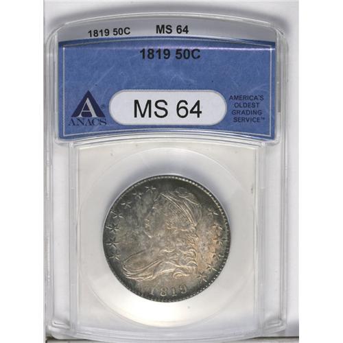 1819 50C MS64 ANACS. O-111, R.2. The reverse die of th 1819