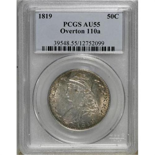 <B>1819 50C AU55 PCGS.</B></I> O-110A. PCGS Population (1/0). NGC Census: (0/0). (#39548)<BR><BR><b>Shipping:</b> Coins & Currency (<a target="_blank" href="http://www.heritageauctions.com/common/shipping.php">view shipping information</a>)
