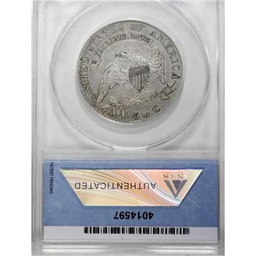 <B>1819/8 50C Large 9 XF40 ANACS.</B></I> O-106, R.4. This scarce variety can be immediately identified by the crude 9/8 overdate and an "accent" mark above the second 1 in the date. Luster shimmers from design recesses, and the golden-gray toning appears original.<BR><BR><B>Coin Engraver:</B> John Reich<BR><BR><b>Shipping:</b> Coins & Currency (<a target="_blank" href="http://www.heritageauctions.com/common/shipping.php">view shipping information</a>)