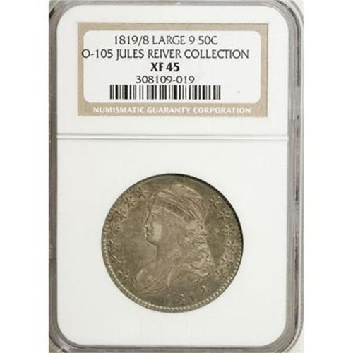 <B>1819/8 50C Large 9 XF45 NGC.</B></I> O-105, Ex: Jules Reiver Collection. NGC Census: (0/0). PCGS Population (7/51). (#6119)<BR><BR><B>Coin Engraver:</B> John Reich<BR><BR><b>Shipping:</b> Coins & Currency (<a target="_blank" href="http://www.heritageauctions.com/common/shipping.php">view shipping information</a>)