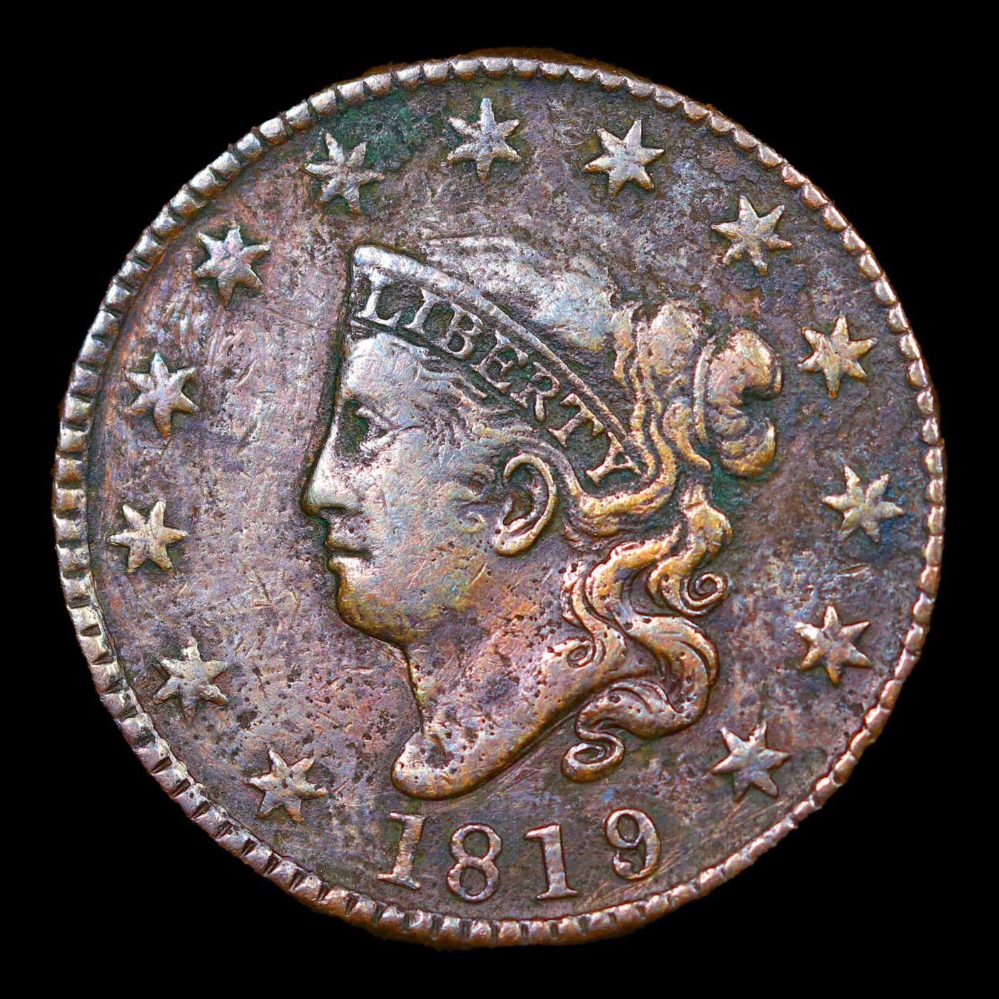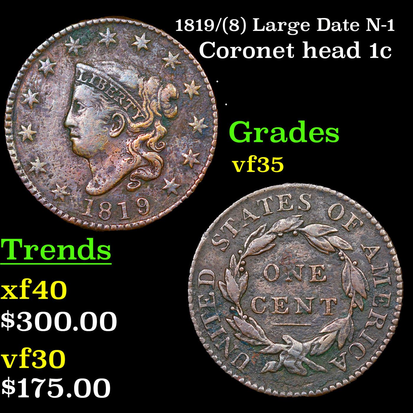 1819/(8) Large Date N-1 Coronet Head Large Cent 1c Grades vf++.