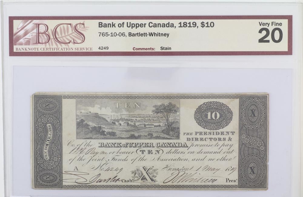 1819 Bank of Upper Canada $10. 765-10-16, BCS VF-20
