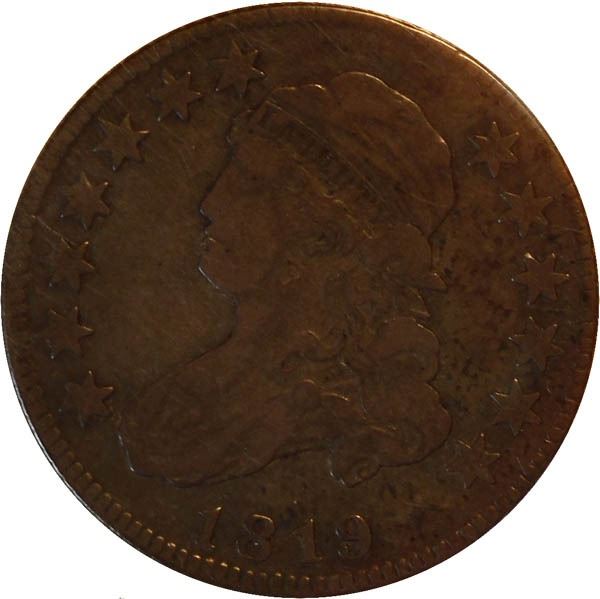 1819 Capped Bust Quarter Dollar. Fine.