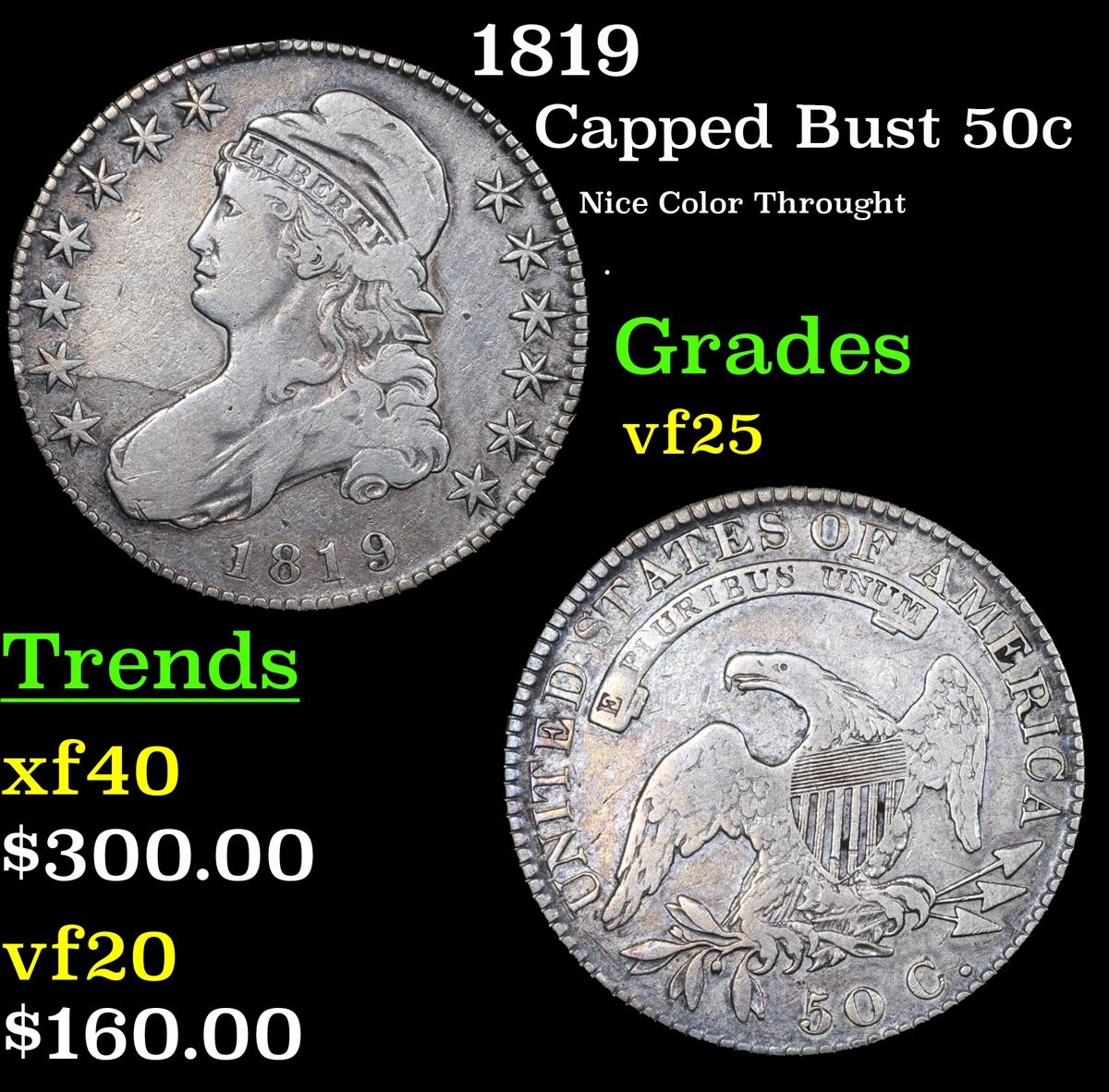1819 Nice Color Throught . Capped Bust Half Dollar 50c Grades vf+.