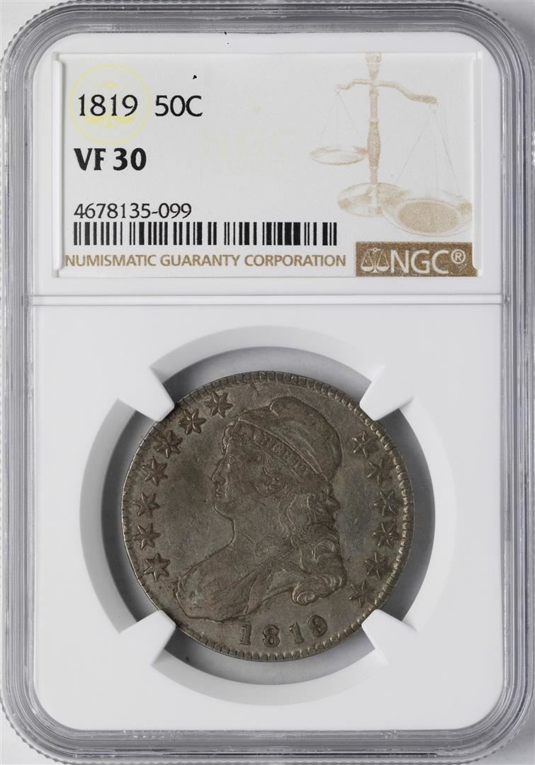 One 1819 Capped Bust Half Dollar Coin NGC VF30. NGC Certified.