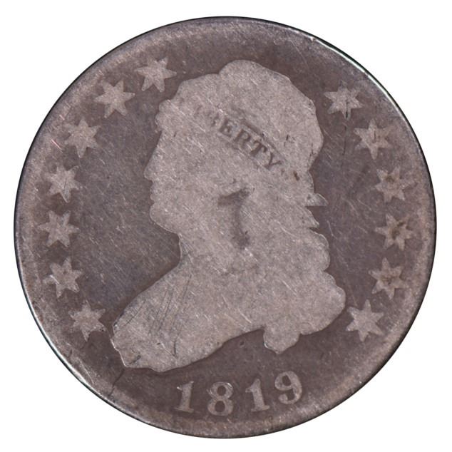 One 1819 Capped Bust Quarter Coin.