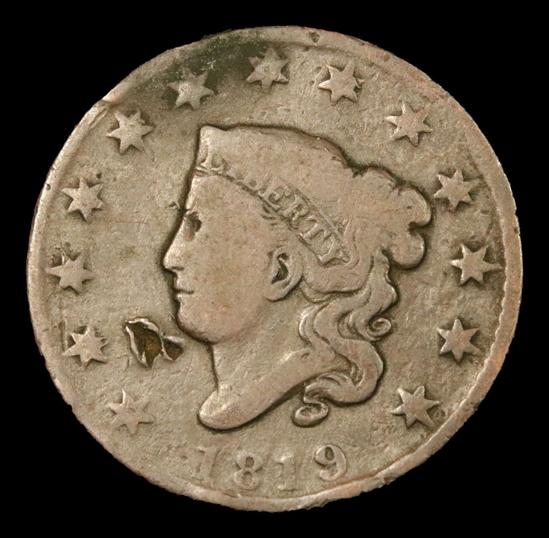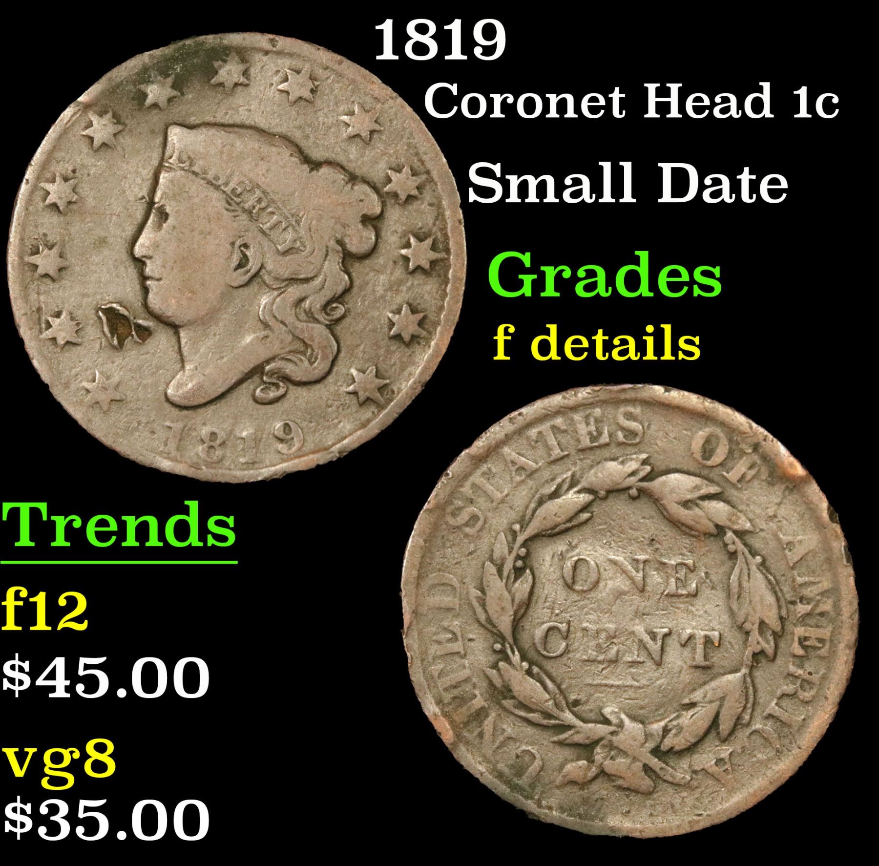 1819 Coronet Head Large Cent 1c Grades f details. Small Date