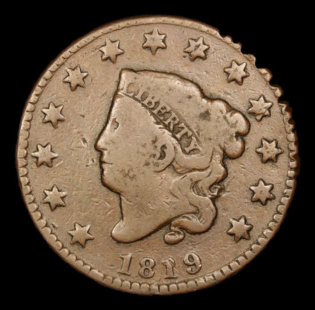 1819 . . Coronet Head Large Cent 1c Grades f details.