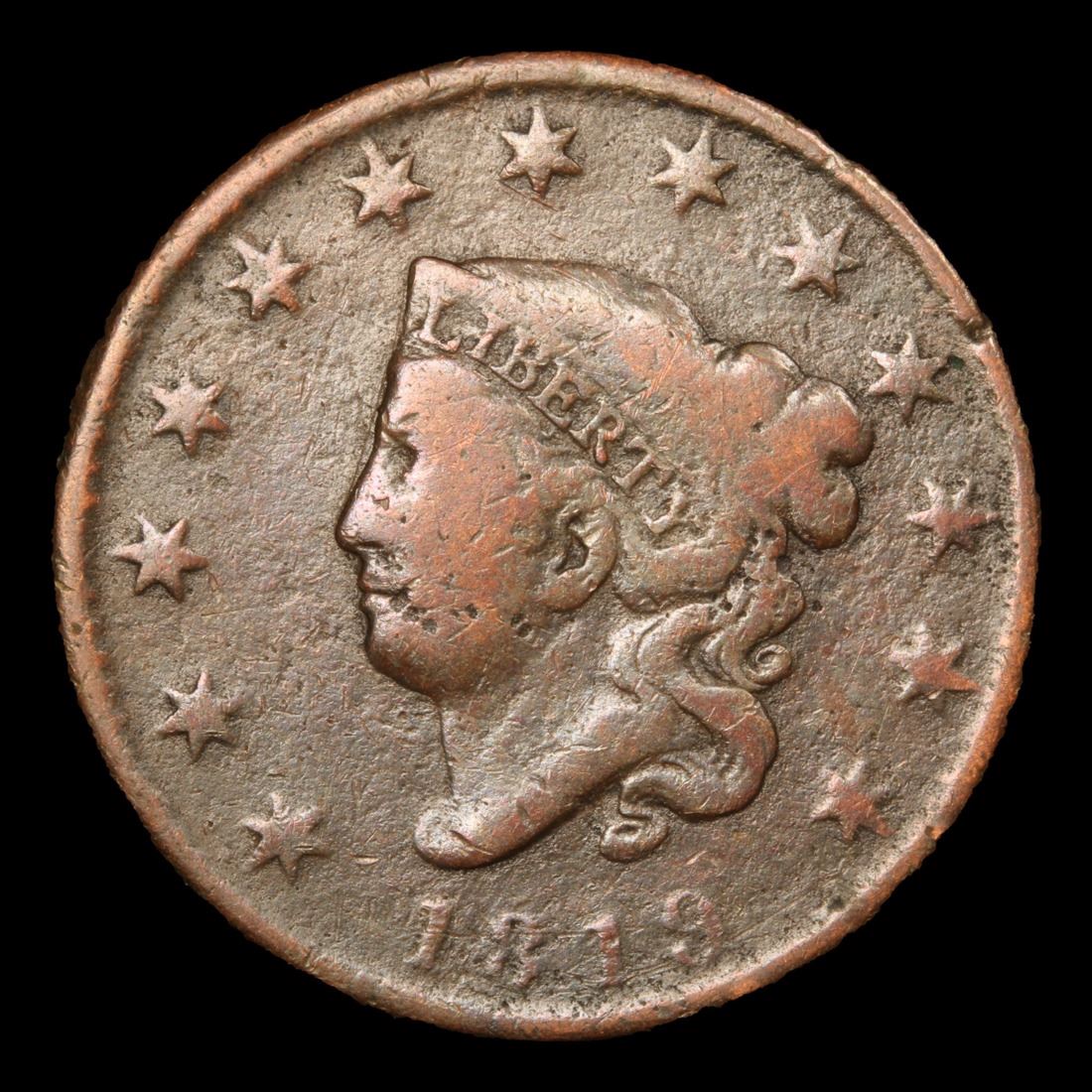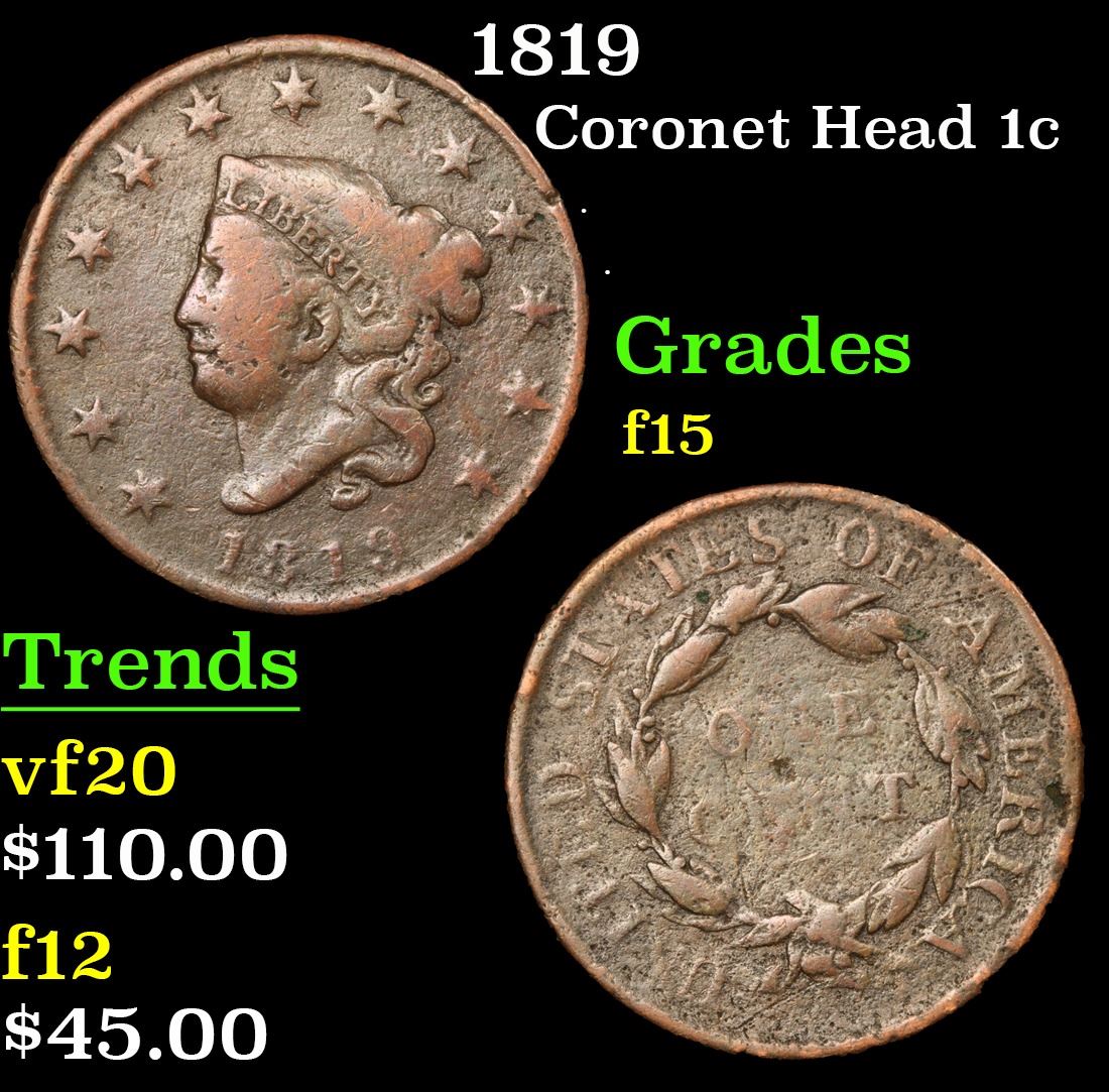 1819 Coronet Head Large Cent 1c Grades f+.